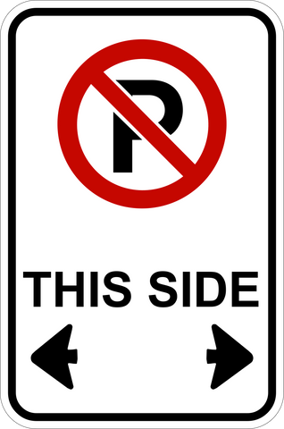 The No Parking This Side with arrows Sign is an aluminum sign, the addition of a reflective background provides for maximum visibility and durability. Our No Parking This Side with Arrows Sign helps drivers navigate legally and efficiently, maintaining order and keeping drivers informed.