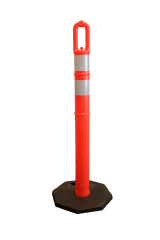 Looking for a durable and highly visible Loop-Top Delineator for your next roadwork project? This bright fluorescent orange delineator stands 42” tall and features two reflective collars for maximum visibility, even in low-light conditions. Made from UV-stabilized polyethylene, it’s lightweight, portable, and includes an 11 lb. black base for stability. The loop at the top allows for easy attachment of barricade tape or lights, making it a versatile choice for marking hazards and boundaries.