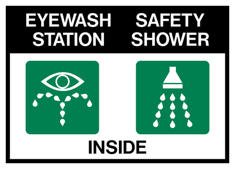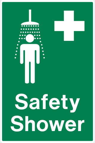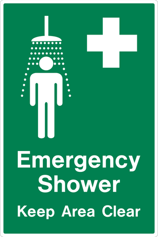 Emergency Shower signage needs to be visibly posted to provide direction to the emergency safety shower. If skin is exposed to a hazardous chemical, the first few seconds are critical. Quick access to the emergency shower to rinse off the harmful chemicals will avoid serious injury.