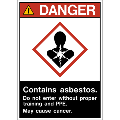 Danger Contains Asbestos May cause Cancer Do Not Enter Without Proper Training and PPE