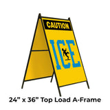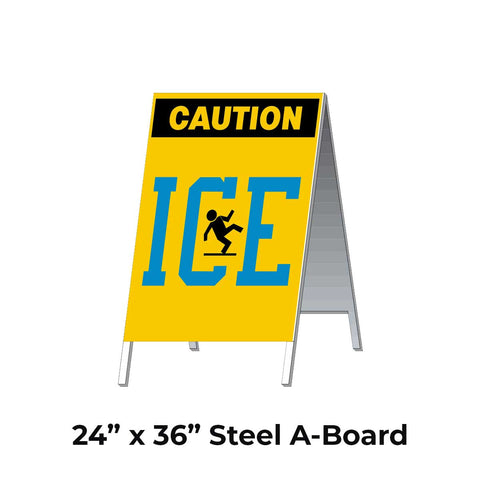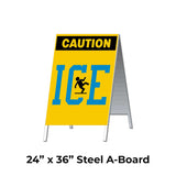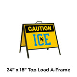 Caution Ice with Blue Text A-Frame Sign Stand