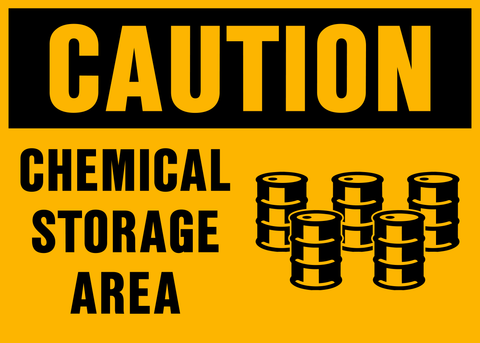 Warn of hazardous storage or hazardous waste with this Chemical Storage Area Caution Sign. Ideal for labs, warehouses, or industrial zones. High-visibility black-on-yellow design. Available in any material and fully customizable for your facility’s needs.