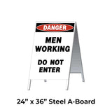 Danger Men Working Do Not Enter A-Frame Sign Stand