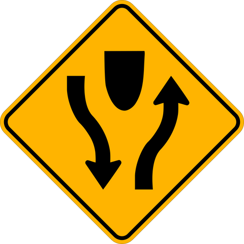 The Divided Highway Begins Warning Traffic Sign features a High-Intensity Prismatic HIP Reflective yellow background with bold black symbols or text on aluminum for maximum visibility. Our Divided Highway Begins Warning Traffic Sign helps keep drivers informed and safe.