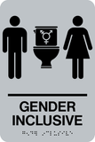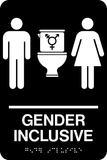 Our Gender Inclusive Washroom Rectangle Braille sign is made of two-toned acrylic material with tactile raised braille beads, letters, and trigender symbol. Complete with adhesive back for ease of installation.