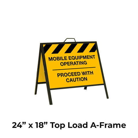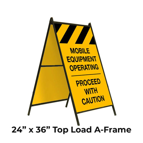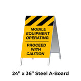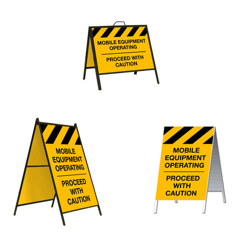 Mobile Equipment Operating Proceed with Caution A-Frame Sign Stand