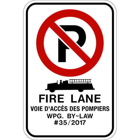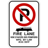 The No Parking Fire Lane By-Law Bilingual Sign is an aluminum sign, the addition of a reflective background provides for maximum visibility and durability. Our No Parking Fire Lane By-Law Bilingual Sign helps drivers navigate legally and efficiently, maintaining order and keeping drivers informed.
