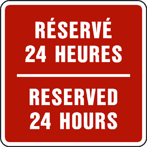 Reserved 24 Hours Red Bilingual Parking Sign