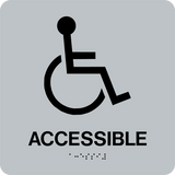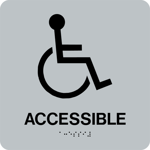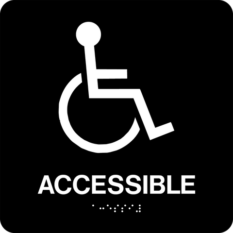 Our Wheelchair Accessible Square Braille Sign is made of two-toned acrylic material with tactile raised braille beads, letters saying Accessible and a standard wheelchair symbol. Complete with adhesive back for ease of installation.